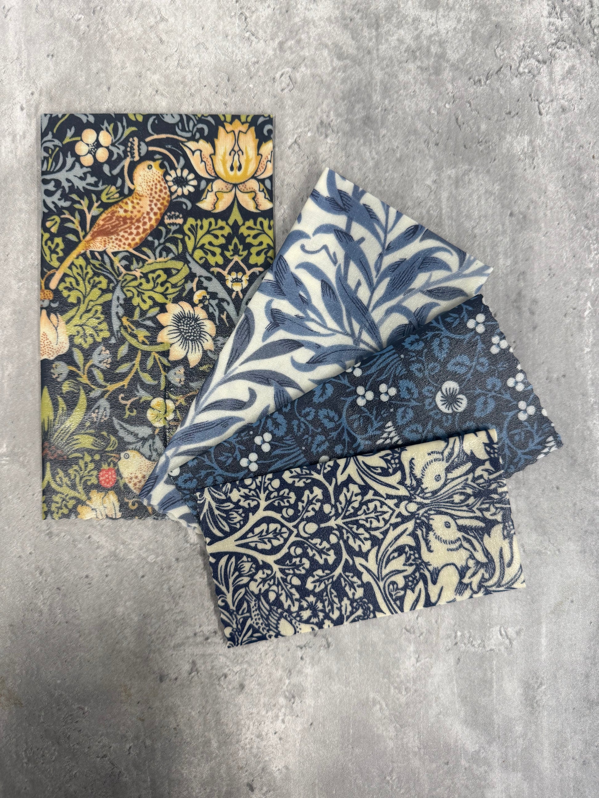 Experience timeless elegance with our William Morris Ultimate Beeswax Wrap Collection. This carefully curated set features four iconic designs: Strawberry Thief, Eye Bright, Brother Rabbit, and Willow Bough, combining style and sustainability for your kitchen.
