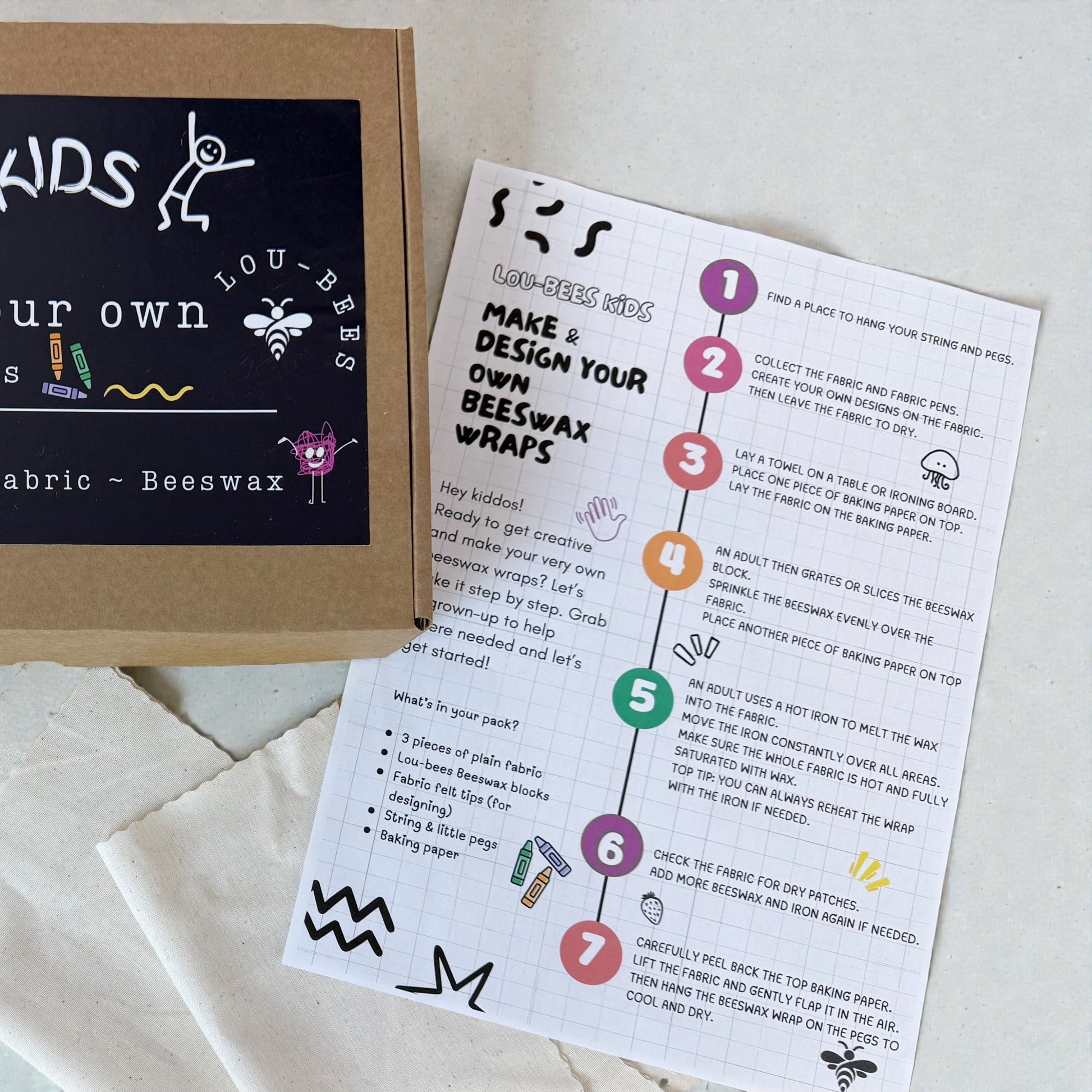 Our Kids Design-Your-Own Beeswax Wraps Kit lets little hands decorate their own fabric using fabric pens, then turn it into a reusable food wrap they’ll actually want to use.