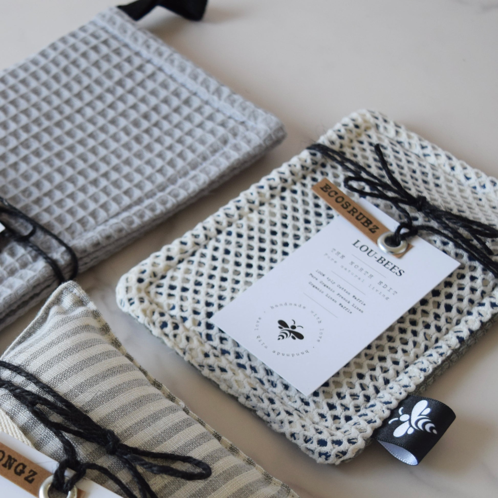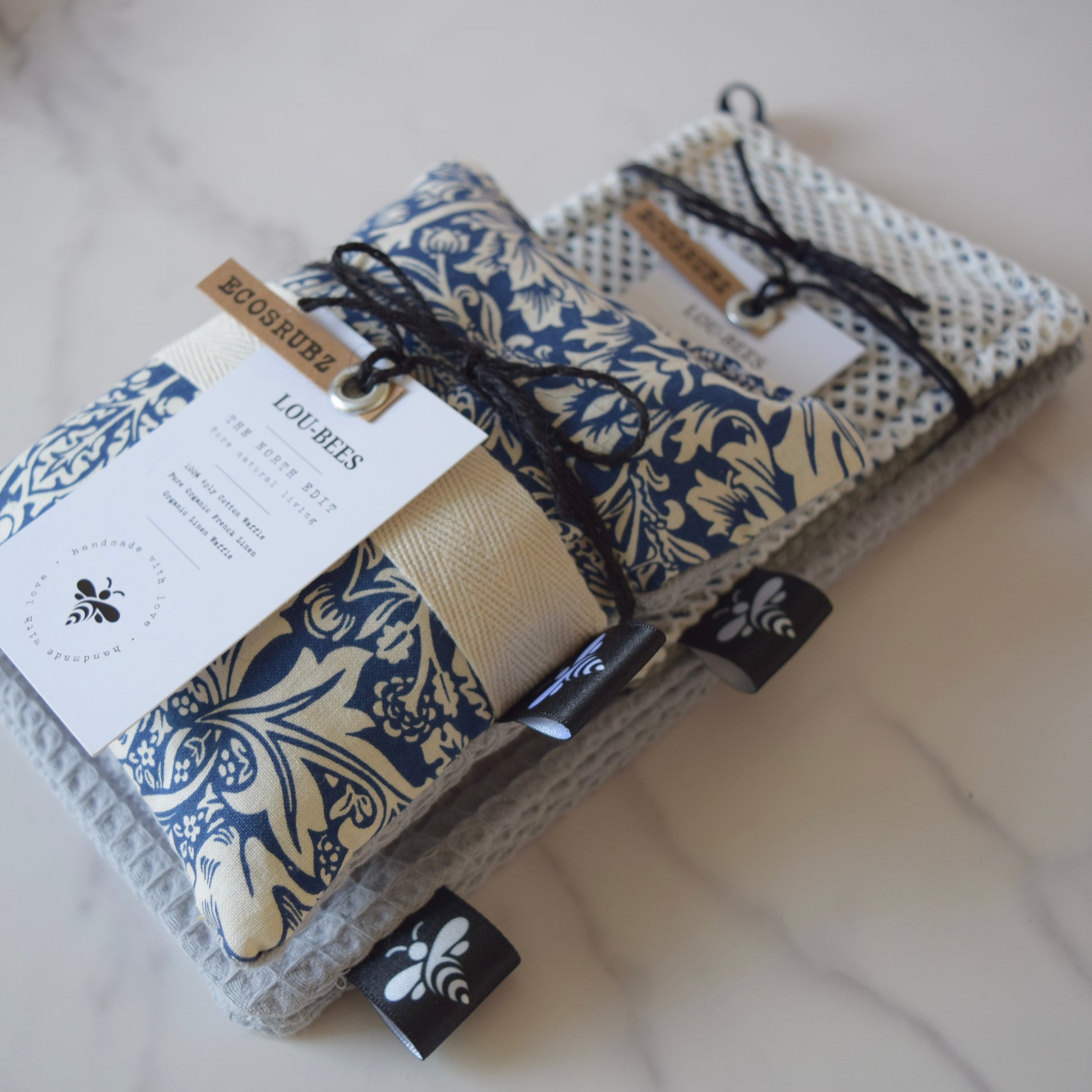 3. EcoScrubz – organic linen waffle + cotton mesh scrubber, finished with a William Morris cotton underlay for a touch of elegance.