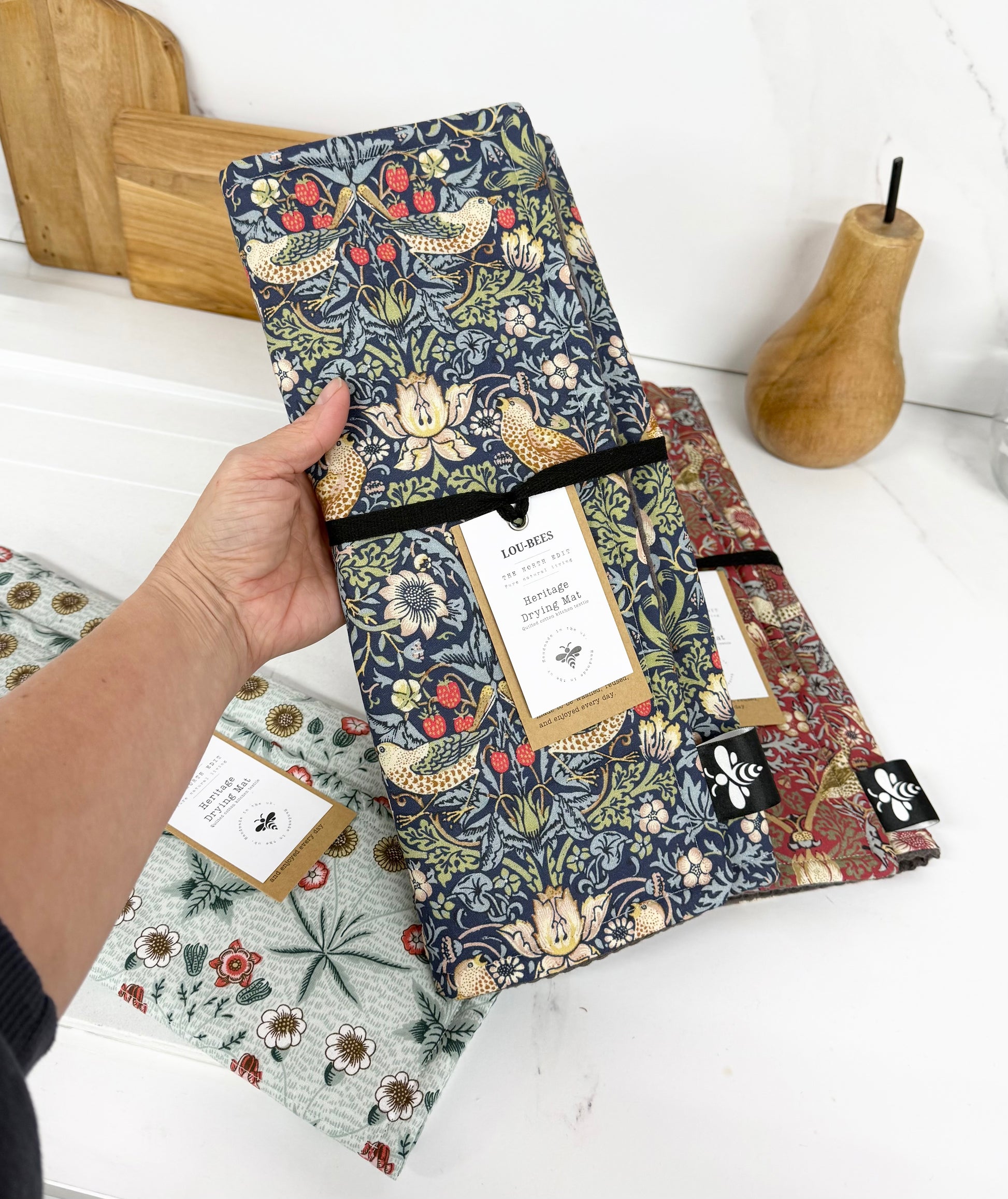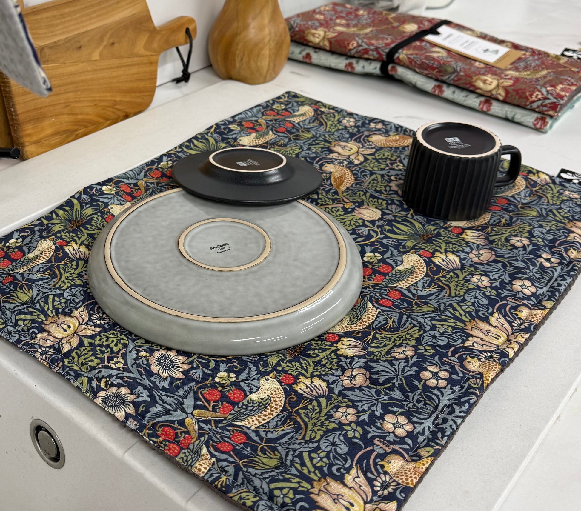 A beautiful alternative to plastic draining boards or standard tea towels.