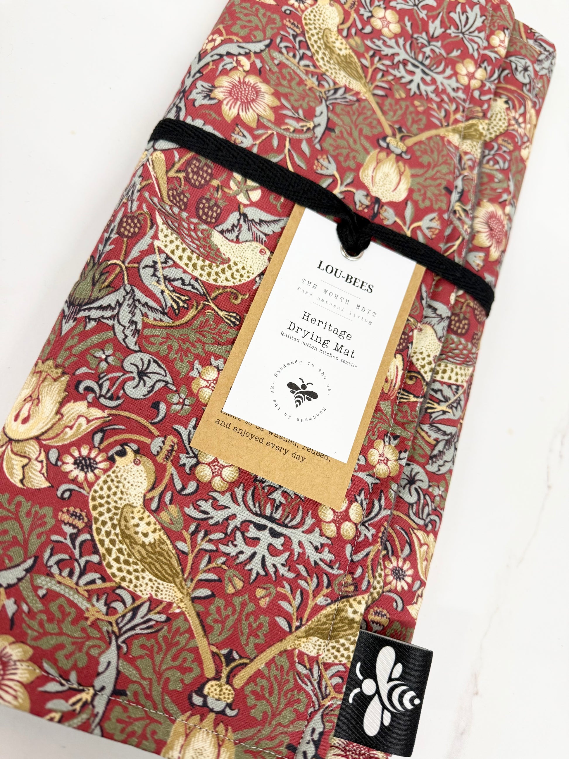 Make a statement at your sink with our Strawberry Thief Red Dish Drying Mat, featuring the instantly recognisable William Morris bird and strawberry motif in warm red tones. Both practical and decorative, this absorbent kitchen drying mat is ideal for everyday washing-up while adding colour and heritage style to your kitchen.